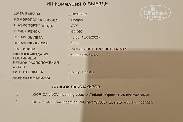 Оценка сервисов отеля автором