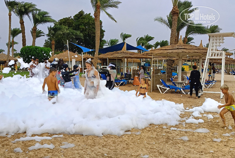 Резюме: отель для местных египтян, их большинство. Европейцы, русские и украинцы в равной степени, все мирно существуют. Анимация рассчитана на египтян. По-русски не говорят, только пару фраз. Первый раз вижу таких работящих арабов, все стараются, улыбаются не наигранно, за спиной не шепчутся, никакого плохого отношения к русских от них не видели. Приветливые и услужливые, готовые помочь всегда. И нам никто не пытался развести на деньги, не клянчили. Кстати, положили уборщику чаевые, он их взял, конечно, но на качестве не отразилось, больше не оставляли. Отель просторный, никто никому не мешает, очередей не было от слова совсем. Тишина, покой, релакс. Вечером делать там кстати нечего, в 22.00 наших уже нет, спят или в номерах. Только местные носятся табором.