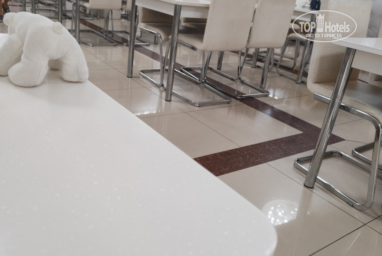 Столовые, рестораном не назову, нормальные. Завтраки вкусные, обеды тоже, ужины по-разному. Если вы заболели, дадут контейнер для еды родным, но только если есть вызов и отметка от врача. Один раз сыну стало плохо, он не смог поесть, в контейнере отказали, т.к. не был у врача. Сравниваю с другим санаторием - там были цветы на столах, мягкие стулья, салфетки на столах, приборы лежали уже на столе, здесь все не так. Платья, которые я взяла надеть на ужин, так и остались висеть в шкафу. Я бы в них выглядела неуместно среди людей в шортах. По выходным было мороженое и вино на ужин.