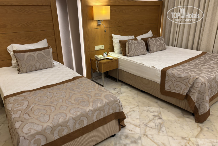 Я воспользовалась советами из предыдущих отзывов и скачала рекомендательное письмо TopHotels. Оно помогло - когда нас привезли в отель в 9 утра, мы не ждали заселения до 14, как положено, а только до 11. На завтрак разрешили идти сразу. При заселении надели золотые браслеты. В течение дня в номер донесли фрукты с вином и халаты, расчески, наборы для чистки зубов. В общем-то, на этом плюсы письма закончились, ни на какие званые ужины, как тут пишут, не приглашали)
