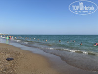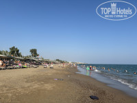Пляж длинный, но справа и слева от бара и еды часто нет мест, мы занимали с утра. Наверное, если уйти подальше, могло быть получше. Заход в море песчаный, с небольшой полосой гальки. Глубина наступает быстро. У берега мутновато и грязновато, на глубине чисто. Но это так везде в Турции и по сравнению с тем, что приходилось видеть, в Белконти достаточно чистое море. Зона для купания большая, есть где поплавать.