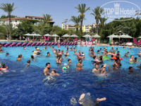 С едой все ок, ее прямо много. Регулярно были морепродукты, красная рыба на завтрак, суши. На улице за рестораном вечером жарят гриль. Очень много десертов и фруктов. Были тематические ужины (турецкая кухня, мексиканская, итальянская, морской). Для детей есть отдельная комната - мини-ресторан. На пляже с 12 до 17 тоже постоянно еда типа бургеров, мороженое, жарят лепешки и пончики. Алкоголь - без проблем, есть штук 5 фирменных коктейлей и стандартные напитки. Шампанское только днем на пляже почему-то) В основном ресторане из напитков постоянно вода с мятой, сок из автоматов (химический), на завтрак свежевыжатый апельсиновый сок, кофе из машины и фильтр, разный чай. На обеде и ужине, конечно, большой ажиотаж. Столы стараются убирать быстро. На веранде побольше свободных мест, но там много курильщиков. Раз или два было невозможно заказать напитки на ужине у официантов - они просто не подходили к нашему столику.