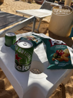 Бар на пляже + снек - так же все напитки и можно покушать бургеры и картошку , которые тебе принесут прямо в шезлонгу.