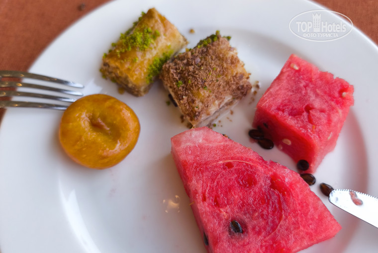Питание , как мне показалось, просело с прошлого августа. Было меньше салатов, очень однообразно и иногда странно, типа гречи с какой то зеленью и ягодами. Видимо просто остатки сливают. Сыры отлично, выпечка великолепна, особенно бореки с сыром и все турецкие десерты. Особенно я люблю ещё с прошлого года пахлаву в молочном соусе.