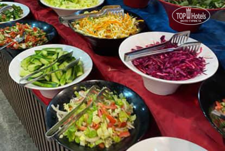 Шведский стол по системе «всё включено» приятно удивил разнообразием и качеством: свежие фрукты и овощи, выпечка, горячие блюда, десерты — даже в рамках четверки этого уровня было более чем достаточно . Некоторые туристы особенно отметили арбузы, персики и даже форель, подающуюся несколько раз за неделю . Бар работает продолжительно, напитки разнообразны, а обслуживание — быстрое и дружелюбное.