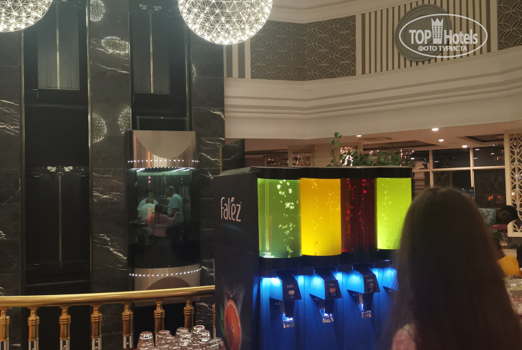 В ресторане мест хватает, но на ужин лучше приходить к 19:00 или после 20.30, иначе будете сидеть на улице без кондиционера. Еда разнообразная, за мясом бывают очереди. Вкусные арбузы, рыба на гриле. Голодным не останешься. В ресторане из алкоголя пиво и вино. Ещё есть бары у бассейна и лобби бар у ресепшена, работают до 00.00. Разные коктейли есть, алкогольные и без. Так же есть бар на пляже, пиво, вино, кола, напитки до 17:00, фастфуд, арбузы и другое.
