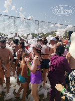 Бассейн не большой, лежаков свободных мало, все плавают как селёдки в бочке, с обеда особенно))
