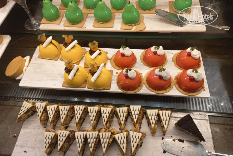 Хорошая еда в основном ресторане. Блюда разнообразные. Еды много на любой вкус! Очень вкусная рвба и морепродукты. Еда здесь понравилась больше, чем в ресторане а -ля карт. Сложно найти свободный столик. Медленно работает персонал, которого, скорее всего в отеле не хватает. Со столов не убирали, пока не уйдешь. Приходилось есть красивый десерт в окружении своих грязных тарелок.