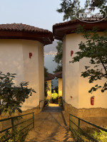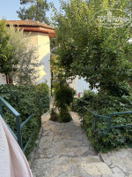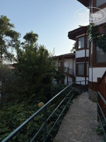 Ощущение, что живёшь в своём бунгало или на даче. Уютное резное крыльцо. Открыл дверь и на тебя обрушивается симфония непрекращающихся здесь цикад или кузнечиков, но они очень громкие. Тут же сушишь сразу на перилах полотенца, не во всех номерах есть балконы.