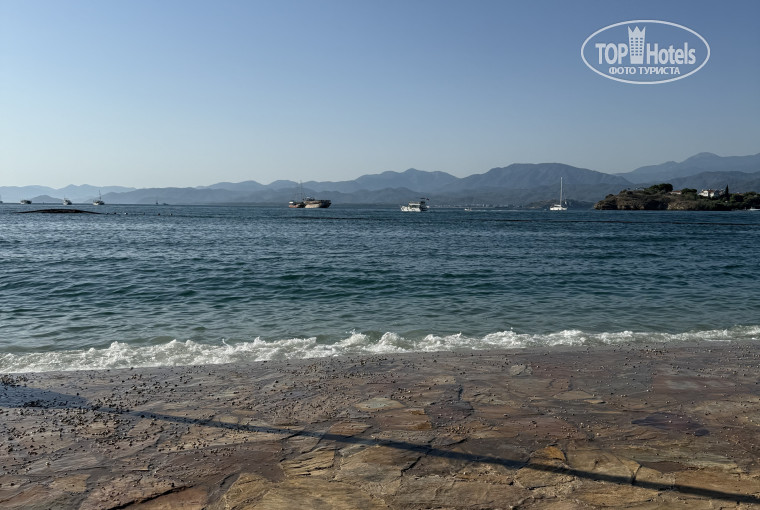 Лежаки у моря расположены на неширокой дорожки из натурального камня, моря прямо у твоих ног. По этой дорожки можно практически вдоль моря обойти весь отель.