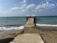 Тут очень шумное море. Волны большие почти всегда. Дно каменистое с плитами, заход не самый удобный. В один день даже первый раз пирс закрыли, утащит в море на раз - два. Но какое же оно теплое.. ммммм. Кайф. Можно спуститься с пирса и спокойно плавать. Прыгать опасно, т.к. камни очень близко, о чем предупреждают информационные таблички.