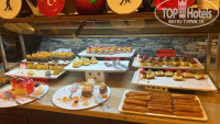 Все стандартно для турции, повторюсь. Салаты и всякая подобная фигня несьедобная, турецкая ночь так себе, ничего вкусного. В целом, всегда можно что-то найти поесть, голодными не ходили, гастрономических изысков не ждали и их и не было. Завтрак банальный, оладьи как везде, омлет, выпечка пресная, раз в 40 мин пекли круасаны размером с палец, и они быстро растаскивались.