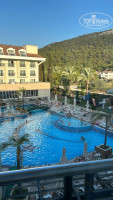 Номер чистый, балкон французский. Жили сначало в номере побольше, не смогли спать с ребенком ни днем, ни в ночной сон, долбежка с бассейна весь день перманентно и вечером до 23 конечно же, попросили поменять номер на номер с видом на горы. Дали. Но номер меньше. Доплат никаких конечно не просили,но мы сами дали чаевые а-ля баксов 20. В общем мы на это плюнули, главное- тихо.