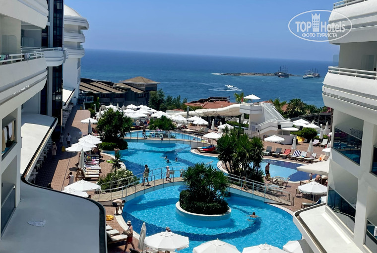 Компактный, практически без «зеленой территории». Расположен в 3 минутах ходьбы от моря. К морю - спуск, в отель - в гору.