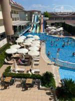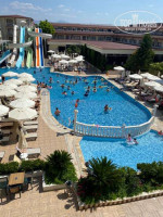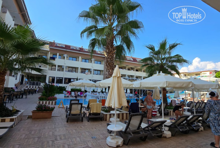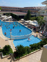 Отель компактный, но ухоженный. Есть бассейн с горкой, детская площадка, немного зелени и цветов, уютные уголки для отдыха. Днём — спокойная музыка, вечером иногда живая анимация, но всё ненавязчиво. Для детей есть мини-диско, и это создаёт приятную атмосферу семейного отдыха.