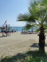 На пляже навесы (один из наших основных критериев выбора). Здесь вода близко к ним, в сезон жары очень удобно=ребёнок сидит под навесом и наслаждается волнами=волны катают по песку, отличный пилинг. Бухта закрыта 2мя волнорезами и смена воды здесь затрудняется. Были дни, когда штормило-при этом море рядом с пляжем было грязновато, со дна поднимается муть. Персонал в отеле доброжелательный/отзывчивый, в ресторане трудятся как пчёлки.