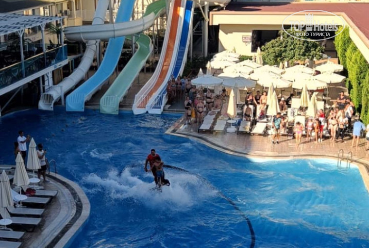 Отель компактный, что для нас оказалось плюсом – всё рядом. Территория ухоженная, много зелени, цветы, пальмы, дорожки чистые. Бассейн небольшой, но уютный, вода всегда прозрачная. Есть горка для детей и зона с шезлонгами. Анимация ненавязчивая: днём лёгкие активности, вечером – мини-диско для малышей и живая музыка. Если хотите тишины, никто не мешает.