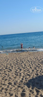 До пляжа возит автобус – около 8 минут пути. Ходит по расписанию, проблем не было. Сам пляж приятный: песок, чистота, шезлонги и зонтики бесплатно. Вход в море удобный, глубина набирается плавно, вода тёплая и прозрачная. Даже в августе не было ощущения толпы – это огромный плюс.