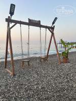 Территория отеля достаточно большая, очень зеленая, чистая, присутствуют даже животные (два козлика, курочки и множество котов). Пляж так же большой, лежаков много, всем всегда хватало места. Море было чистым, за исключением пары дней (присутствовал мазут или какое-то топливо, оставался на ногах и руках после выхода из воды). Что это было, мы так и не поняли, но сильных проблем даже эта неприятность не доставила. Прямо у моря установлены качели, а в качестве альтернативы лежакам на территории отеля есть несколько гамаков и домиков-бунгало с матрасами. Зона бассейна также хорошо обустроена, лежаков достаточно, в корпусе Annex есть замечательные водные горки, которые никого не оставят равнодушными.