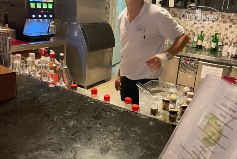 Бары, а их я насчитал три: в лобби, у бассейна и почти на пляже. По ним вопросов нет. В барах работают приветливые, отзывчивые ребята. Замотаные, замучаные, потому что работают без выходных и с 10 до 24 а потом еще приборка. Но лицо держат.