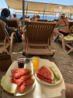 Очень много народу в море, как селедки в бочке друг о друга трутся. Очень много местных, мусульман в своих одеждах в больших шляпах и с кругами, которые очень много занимают пространства. Бар на пляже без алкоголя. С 10-11 дают фрукты (арбуз дыня). Днем сэндвичи или сладости. Ничего особенного и аппетитного.