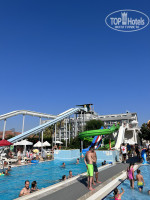 1. Первый и самый главный минус это номера. У нас в ваучере семейный комфорт размещение лейки. Не главный корпус. Сначала нам дают в лейках с разбитым зеркалом во всю ширину а оно во всю стену, без балкона и с видом на аквапарк который как раз был открыт. Сразу иду менять дают ключ с видом на парковку и будку охранника и там как раз приезжает автобус и машины шум стоит нехилый. Иду менять. Дают опять скрепя сердцем постоянно приговаривая что нет номеров но вот последний посмотрите. Опять иду сама по жаре не зная территории. В третий раз кстати решили проводить. Номер ужасен. Фото делать не стало их тут достаточно. Первый этаж. Нет коридора сразу комната. Грязные липкие полы. Плесень везде ванна балкон окна. Вид на кондиционеры в соседнем домике. Первый этаж скользкая холодная плитка ну и грязная не забываем. Никто не ждал гостей время почти 15.00) Треш. У меня уже слезы иду обратно. Номер давать не хотят завтра приходите с доплатой в главный корпус. Это девушка по русски говорила. Подошел турок сжалился и дал хороший номер в лейках на третьем этаже. Балкон большой коридор две отдельные комнаты. Ламинат, чисто. Но опять же в ванной плесень была. Ремонт не новый но более менее. Понимаем что это предел, уже устали, соглашаемся. На лобби опять же русская девушка говорит номер улучшенный надо доплатить. Турка менеджера спросила сказал не надо. В общем нервы потрепали. Мини бар пополняли убирались полотенца меняли. На мое др в номер принесли вино и фрукты.