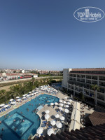 По приезду нас за 50 долларов заселили на 5 этаж, хотя я просила номер пониже, но сходя, посмотрев, что за номер, решили доплатить и остаться в нем. Вид из номера был на бассейн. Номер большой, чистый, все работало. Холодильник регулярно пополняли водой, колой, фантой, минералкой. Территория маленькая, ее практически нет, но за территорией есть места, где можно прогуляться. Также есть аквапарк с большими горками, который работал по расписанию. Рядом с отелем речка с черепахами. До моря идти 5 -7 мин вдоль этой речки, где плавают черепахи, утки, много рыбы, всех можно покормить. Читала, что писали, что есть неприятный запах от этой речки в отеле..так хочу отметить, что в отеле ничем не пахнет. Ест запах от реки, если у нее чуть ли нос не засунуть. Территорию и номера убирали каждый день. Все чисто.WI-FI по всей территории нормальный, бесплатный