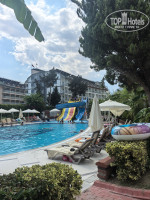 Отдыхали в отеле с 25 августа до 1 сентября парой. Осталось двойственное впечатление от отдыха. Полная противоположность высокого уровня качества питания и анимации, при этом не качественной уборки и нереально маленьких номеров.Это было просто удивлением-какие микроскопические номера!Возможно в другом корпусе другая планировка,не могу утверждать, но в первом корпусе мы переночевали в двухместном с боковым видом на море 1216 и поменяли в этом же корпусе на трёхместный 2311 с видом на горы и дорогу(нам принципиально две кровати нужны были), хотя спать с открытым окном мешал шум машин. Оба тесные настолько, что невозможно чемодан раскрыть на полу, просто нет места. В санузле чтобы открыть дверь(внутрь) нужно сесть на унитаз. 2х местный с боковым видом на море был с небольшим балконом,вид на соседний корпус и постоянным запахом из кухни. Настолько тесно и не уютно было, как в склепе.Мы заменили его на 3х местный немного просторнее, кровать одна 2х спальная, другая маленькая, балкончик французский. Сушилка для белья внутри душевой кабинки, т. к. места мало в санузле, крючки для полотенец тоже в самой кабинке(!) по этой же причине. Соответственно, белье не сохло,полотенца влажные постоянно, приходилось вешать на французский балкончик.