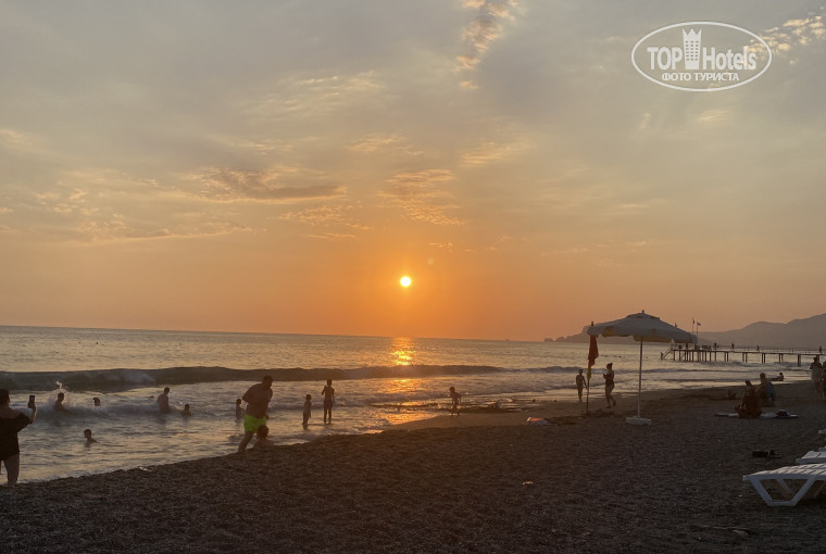 До моря рукой подать, буквально 2-3 минуты и ты на море. Лежаков всегда хватает свободных. Вход в море проблематичный - плиты и камни, также большие волны на пляже, поэтому особо не поплаваешь.