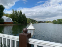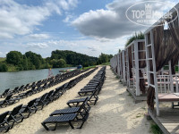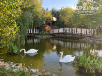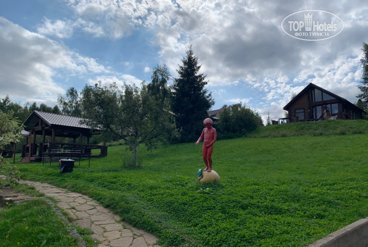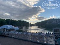Территория, собственно, организована так же. Более-менее прилично пространство от основного корпуса до реки, променад вдоль реки. И "деревня" - дома в русском старинном стиле со странным фонтаном во дворе, он круглосуточно шумит-палят якобы пушки, кричат командиры, и если у вас номер с окнами на фонтан в одном из этих домиков - вы очумеете. Парковка почему-то размещена практически в центре территории, постояннобудете её пересекать, гуляя. Вечером освещено только пространство у основного корпуса! По всей территории темень. Предлагаю выдавать при заселении гостям налобные фонарики, чтобы они не сломали ноги, попытавшись прогуляться к реке между коттеджами.