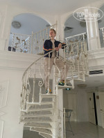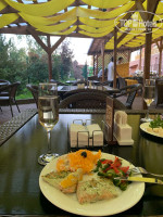 Далее нам вызвали багги и боя, который довез нас на парковку и назад и и донес чемоданы до номера. Вид из номера был на реку, павлины и белые лани внизу и веранда ресторана "Кандинский". Спустились на ужин. Пёстрые скатерти, о которых все писали негативный отзыв, убраны - вместо них синие, однотонные. Насчет еды - "столовкой" я бы это не назвала. Вечером воскресенья были мидии в винном соусе, по утрам - свежевыжатый яюлочный и морковный соки, апельсиновый просили -сказали -только по выходным))) Утром также каши 3х видов, блинчики, яичницу и омлет можно заказать на открытом уголке кухни, там же венские вафли. Есть колбаски, нарезки сыра и колбасы -не пробовали. Сырникик действительно невкусные совсем. Для желающих с утра -шампанское. Алкоголь бесплатно -только во время завтрака, обеда и ужина. В другое время -платно. Или минибар, который оплатите при выезде (проверяйте при заезде на соответствие списку, мы обнаружили, что не хватает набора орехов за 1500 руб!). Сообщили об этом на ресепцию -принесли.