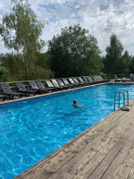 СПА -маленький бассейн, там куча кнопочек, жмешь -и получаешь гидромассаж, если тебя не унесет этой струёй к противоположной стенке. Хамам и сауна небольшие. Это весь, собственно, водный комплекс, входящий в проживание. Остальное -платно - соляная пещера, процедуры, массажи. Цены удивили -весьма высоки по сравнению с другими подмосковными отелями. Бассейн перехлорирован, у меня через полчаса дико защипало нос и глаза, еле отмылась в душе и больше не ходила туда. Открытый подогреваемый бассейн порадовал - тоже хлорирован сильно, но на воздухе по крайней мере хлор улетучивается. Мы плавали там совершенно одни каждый день - он подогреваемый, и утром его чистят, потом за день налетают ветром листья и мушки.