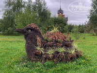 Теперь по территории. Такое впечатление, что управляющий -поклонник арт-хауса. Вы встретите рядом совершенно несовместимые по стилю скульптуры -"писающих мальчиков", которых почему-то уйма в разных местах, и поделки из дерева, бюст Ленина и старые авто, манекены со странными дачными композициями, плетеные скульптуры, металлические, статуи как головы с острова Пасхи и даже сломанное пианино в кустах....