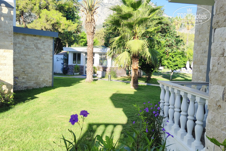 Территория отеля компактная, красивые сосны на территории, красивый вид на горы