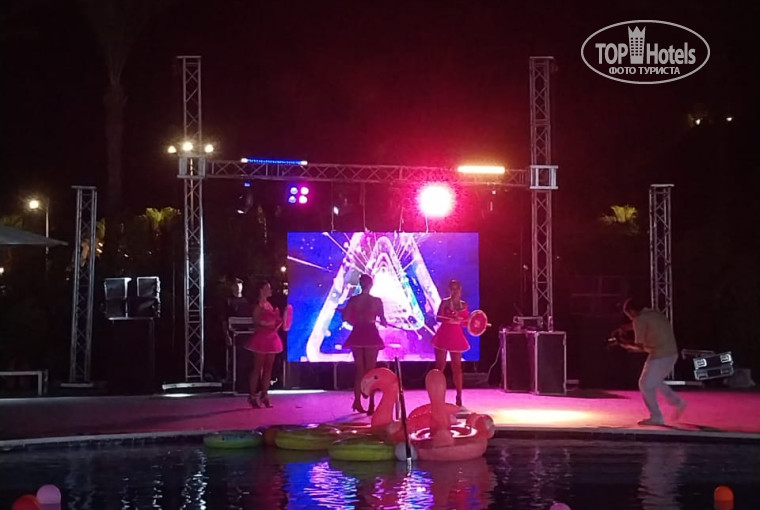 Обстановка на территории отеля приятная и спокойная, много зелени, ухоженные дорожки, уютные уголки для отдыха. Есть бассейн, где всегда кипит жизнь. Вчера, например, проводилась вечеринка у бассейна — отличная музыка, веселая атмосфера, аниматоры вовлекали гостей, и мы тоже здорово повеселились. Можно сказать, что здесь действительно умеют организовывать досуг.