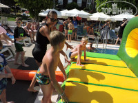 Детский клуб для детей есть у главного бассейна. Мы то не успевали, то не проходили по возрасту, то уезжали на пляж. (Сн. 12) Однако аниматоры сами приглашали детей на доступные мероприятия. При нас это был «Крокодил». Огромный надувной крокодил с полосой препятствий, которую нужно было преодолеть на перегонки. Ребятам очень понравилось! (Сн. 13, 14)