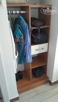 Номера Calimera Side Resort представляют из себя 1-спальные квартиры, состоящие из собственно спальни и единого помещения прихожей с 2-спальным уголком и мини-кухней, а также балкона, являющегося одновременно местом для курения и для сушки белья. Надо отметить, что сушки белья сделаны относительно обычных сушилок двух из толстых, прочных и гладких труб. То есть сушить на них можно вещи даже не выжимая их перед сушкой. Ввиду жёсткой борьбы в Турции с курением, пепельницы горничные не обслуживают, поэтому их нужно обслуживать самостоятельно. Санузел достаточно большой и удобный. Полочек тоже было достаточно. (Сн. 04, 05, 06, 07, 08, 09)