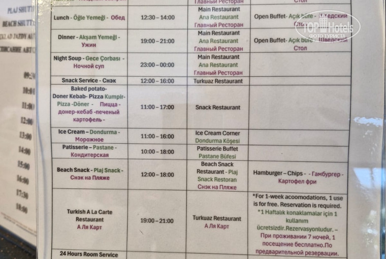 7. При отеле 11:00 – 17:00 пицца, печеный картофель с начинкой. Можно перекусить, если пропустил обед.