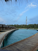 Касаемо, номера, мы жили в Делюкс Скай (номер 246). Расположение бунгало очень удобное. До ресторана/бара/ресепшена идти 2 минуты, но есть и свой минус! Пляж напротив нашего номера не очень хороший, мы там 1 раз поснорклили среди рифов и больше никогда туда не ходили, т.к. там мелководье, когда плаваешь среди кораллов расстояние до них в нескольких сантиметрах. Без ласт с маской или корралок (тапочек) тоже особо не поплаваешь (при входе сразу осколки кораллов). Вообщем, в этой части острова пляж плохой, но начиная от водных вилл до причала супер для снорклинга! Водный мир разнообразен, но кораллы практически все мертвые!!! Рыбок разных видов много, также видели ската орляка, акул и тд. Рыб триггеров очень много (два раза уплывала от них, чуть не укусили). На мой взгляд, надо брать хотя бы кораллки с собой, т.к. идеального песочного дна нигде на острове нет! Далеко не заплыть из-за течения, поэтому самый идеальный вариант - снорклинг. Каждый день снорклили, просто так не плавали.