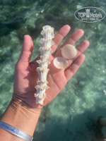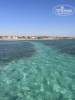 Пантон деревянный, идти ~ 100 метров до глубины и внизу пантона много рыбок. Но можно с берега идти купаться до глубины, тоже очень приятно.