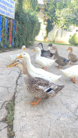 Территория: огромная, много зелени , есть кролики и гуси , гуляют везде