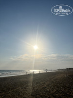Пляж -песок, пешком не быстрым шагом 10 мин, нисколько не напрягает, а даже полезно , после такого обилия еды , но так же ездит и маршрутка на пляж. на пляж ходили после завтрака, лежаки свободные были.