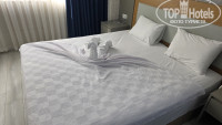 Общественные пространства и номера со свежим ремонтом и мебелью. Номер убирали хорошо и ежедневно (смена белья, полотоенец и мытье полов). Кондиционер в номере работал хорошо и без отключений. Wi-fi быстрый и хорошо работает и в номере и на всей территории отеля (но иногда в течении дня его надо перезапускать). На территории отеля везде чисто. Еда разнообразная и вкусная (множество блюд, всегда есть цельная в кусках курица, индейка или рыба). В пляжных барах лепешки с сыром, картошка фри, бургеры, мороженое, коктейли, молотый кофе, пирожные. В лобби-барах коктейли, пиво кофе, разные пирожные. Бесплатная сауна (всегда свободна) и хамам (когда в нем нет процедур). Хорошая анимация. По вечерам живая музыка и представления (в том числе с гимнастами африканцами). По территории отеля и города бродит много милых ручных котиков. Пляж песочный, море очень теплое (29 градусов), с маленькими волнами и чистое даже у берега! Не далеко (1 км) от центра Кемера, с красивыми барами, кафе (в том числе Макдональдс, Старбакс, Irish bar с живой музыкой), магазинами, пешеходной улицей с искусственной рекой, яхтклубом, небольшим променадом. В общем и место Кемер отличное и менеджмент отеля грамотный (обеспечивает хорошое качество по приемлемой цене).