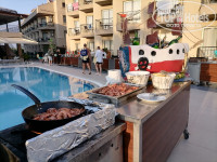 Привет всем! Сначала о хорошем. Отдыхали в отеле с 29 августа по 07 сентября, 10 дней, 9 ночей, втроём я, жена и ребёнок 5 лет. Прилетели рано утром. В 8 утра были в отеле. Получили браслеты и пошли на завтрак. Заселили нас в номер в 13 часов. Рассчитывать на что-то иное не стоило, так как номера освобождают в 12 часов, а то и позже, спасибо тормозам-отдыхающим кто не способен заранее собрать свои вещи и вовремя сдать номер, далее идёт уборка, выдают номера ближе к 14 часам. Дабы не терять время мы пошли в хамам в подвале 3 корпуса, переоделись там в купальники в нормальных цивильных раздевалках, в шкафчике под ключ оставили вещи, ключ взяли с собой и пошли на море. Море сказочное. Температура воздуха днем 32 градуса. Море рано утром 26 градусов, вечером под 30 градусов, так как за день прогревается отлично. Вечером купаешься как в ванной. Питание в отеле очень хорошее. Разнообразное. Каждый день была рыба и в отеле и на пляже. 3-4 вида мяса и на обед и на ужин. Десерты очень вкусные. Мороженое с 13 часов в кондитерской. На ужин мороженое возле взрослого бассейна. Вино сносное. Пиво неплохое. Игристое вино которое все называют шампанским - хорошее. Виски с колой - так себе. Текила бом-бом - просто огонь. Анимация понравилась. Большой привет всем девушкам: Татьяне, Альбине, Алие и Лейле. Октай тоже прикольный чувак. Уа Уа. Анимация в 21.30 интересная. Выступают приезжие артисты. Хороший уровень танцоров и акробатов. Раз в неделю конкурс на мистера или миссис отеля, это было весело. По субботам пенная вечеринка у детского бассейна. Интернет отлично ловит в отеле и на пляже. Теперь о минусах. Фрукты моют очень плохо, просто отвратительно. Это скорее всего и есть причина ротовирусов о которых тут писали. Мы ели арбузы, очень вкусные, дыни и бананы. Яблоки и сливы мы брали с собой, нормально мыли их своими руками и потом ели в номере или на пляже. Пляж грязноватый. Не очень грязный, но там валяются окурки, пластик, бумага - все это можно было бы собрать довольно быстро и стало бы гораздо приятно идти по очень хорошему белому песку. Мужчина-турок на ресепшн очень нервный, грубо разговаривал с гостями, можно сказать хамил. Он конечно не мог дать номер лучше того который гостям не нравился, потому что отель забит на 110%, но разговаривать нужно вежливо. Ему самому хорошо было бы взять отпуск и отдохнуть. Екатерина как могла сглаживала углы. Номера на 5 этаже плохие из-за планировки зданий. Там мало света на балконах, это вообще сложно назвать балконами. Берите номер подороже (супериор) и твёрдо стойте потом на своём - никаких крайних этажей при заселении так как я дескать не за эти вам платил свои деньги. Отель я бы оценил как 4*, он не тянет на 5*. А так в целом его рейтинг 4.8 из 5 баллов это правда. Подтверждаем. На этом всё - доклад окончил. Чао-чао, бай-бай, гили-гили, пока-пока