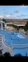 Территория отеля ухоженная, зеленая и, что очень важно, полностью огороженная и безопасная. Она не огромная, и это ее главный плюс! Ребенка можно было спокойно отпустить побегать по дорожкам, пока мы сидели в шезлонгах — он всегда был в поле зрения. Бассейн стал нашим главным спасением. Чистый, с постепенным заходом (что критически важно для малышей, которые только учатся плавать) и отдельной детской секцией с теплой водой. Сынишка буквально не вылезал из воды. Лежаков всегда хватало, даже в пиковые часы, а зонты от солнца создавали приятную тень.