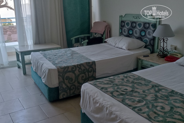 Отдыхали вдвоём с подругой 9 ночей. Наш корпус Вью находился на холме, номер был 6122, приличный, всё работало. У нас был хороший уборщик Керим, уборка нас устраивала, всё менял, мыл, было чисто. Чтобы выйти на пляж нужно спуститься по лестнице и пройти вниз к корпусу Бич, перейти дорогу, по жаре это было утомительно. Территория небольшая и глаз не радовала, мало цветов и фотозон нет. Интернет в отеле отвратительный, лучше сразу купить симку. Пляж небольшой, но лежаки свободные были всегда, полотенца меняли каждый день утром по карте. Вход в море открывали с 9 утра, это очень неприятный момент, раньше 8.30 спасатель не приходил и люди вынуждены были ждать и лишать себя удовольствия плавать в море. Понтон длинный,пластиковый, во время волн идти по нему неудобно, очень качается. Место для плавания, огороженное буйками, очень маленькое, народу в воде и на понтоне очень много. Почти сразу от коралла мало видно дно, начинается бездна. Рыбки были много и разные, также медузы, скаты, барракуда, мурены. С понтона каждый день погружаются дайверы, места для плавания мало и понтон облеплен постоянно кучей народа, ни войти ни выйти спокойно. Плавают катера с ватрушками и бананом, часто воняет топливом. Рядом с отелем идёт стройка, с утра шумно, постоянная долбёжка, музыки на пляже нет. Всё веселье возле бассейна, анимация была только там. В баре только лимонад и вода, алкоголя нет. У бассейна были картошка фри и бургеры, мы туда не ходили. На пляже один туалет в зоне СПА с одним унитазом и сломанной дверью, которая не закрывается, что очень некомфортно. В нашем корпусе один ресторан, еда нормальная, каждый день была разная рыба (вкусная), курица, говядина. Овощи были невкусные, зелени почти не было,из фруктов дыня, финики, апельсины, бананы. Блинчики утром не пекли, только яичница, мюсли, йогурты и булки. Вино и пиво только платно, то что бесплатно традиционно дрянь. Кофемашины нет, кофе только растворимый, гадкий. Аля карт один и тоже платный. Народу было немного, никаких очередей нет, в корпусе Вью только арабы, которые кстати вели себя прилично,в отличии от итальянцев, и немного славян. В отеле много итальянцев , очень шумные и бесцеремонные, к которым особое отношение, им стелят полотенца и встречают как дорогих гостей, славян вообще не замечают демонстративно, они не интересны, что по- моему мнению просто неэтично по отношению к гостям отеля.Русские песни нигде не звучало, только итальянские и то из соседнего отеля. Нет воды в бутылках, только при заезде даются две по 1,5л, потом нужно набирать воду из кулера в ресторане. Каждый вечер в корпусе Бич были шоу, ничего интересного, да и из-за жары находится там было невозможно. В общем и целом нам отель не зашёл, какой- то унылый и всё рассчитано на итальянцев. Ну и вишенка на торте-в день вылета нас не пустили на обед, хотя браслет не срезали, жадюги. Отель не рекомендую и туда не вернулась бы, за эти деньги можно найти получше.