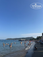 Пляж: пляж хороший, песчано-галечный с удобным заходом в море. Отдыхающие кидают много мусора, но его регулярно убирают поэтому в общем и целом пляж чистый. Если бы постоянно не мусорили, то было бы еще лучше. Лежаки действительно стоят очень плотно друг к другу и между ними даже сложно пройти, но зато их много и всегда можно найти себе место. Лежаки занимают еще с вечера и раннего утра и поэтому после 8 утра найти свободное место сложно, но возможно. Мы тоже занимали с утра, т.к нас было четверо и хотелось лежать рядом, а не быть разбросанными по всему пляжу.