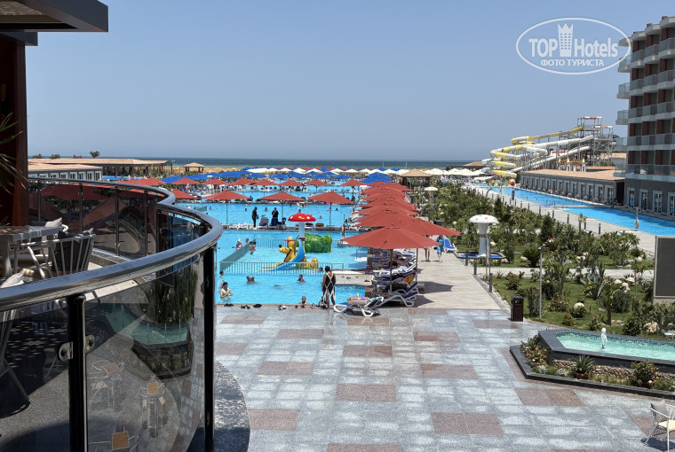 Территория отеля поражает своим масштабом и обилием бассейнов, окруженных зелеными насаждениями. Вечером вся эта красота подсвечивается оригинальными светильниками в виде грибов, создавая волшебную атмосферу. Повсюду царила чистота. Но, безусловно, главной изюминкой территории является фонтан, который завораживает переливами разноцветных огней.