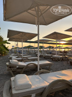 Лежаков достаточно, но если прийти после 9 утра, на них можно не попасть. Пляж убирается, но на утро, он грязный, почему, не совсем понятно. Работают душевые и кабинки для переодевания. Есть пляжный бар с напитками.