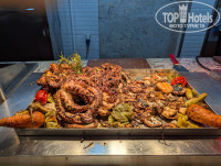 Питание: за исключением поздних завтраков в виде булочки с кусочком сыра и пожившего салата, замечательно, но все впечатление испортил поздний завтрак, по приезду мы опоздали на основной, голодные и уставшие пошли искать поесть и ничего не нашли, висит мясо для шаурмы, мы его видим, мы чувствуем его запах, но поесть нельзя, только с 13-00. Злые вернулись на ресепшн и поругались, надеюсь, администрация отеля пересмотрит очень скудное меню поздних завтраков в отеле. Красной, солёной рыбы на завтрак, как в Савое, здесь нет, иногда бастурма или Дорблю, не каждый день, креветки дают 3 или 4 раза в неделю, из морепродуктов всегда что-то есть или кальмары, или осьминоги, или креветки, четверг рыбный день, дают ещё суши, суши - дрянь, готовить не умеют, риса много, начинки мало, я не смогла есть. На завтрак дают натуральные фреши: манго, апельсин, клубника, мед в сотах и мед с разными орехами. Алкоголь не съедобный, крепкий мы не употребляем, а от вина жуткая изжога, шампанское платное, кстати, первый раз я попала в отель, где платное шампанское, очень обидно, я люблю шампанское, знаю, что в том же соседнем Савое, за те же деньги, его наливают и наливают импортный, так как сам Египет шампанское не выпускает, да что говорить в бюджетных пятерках по три вида. За поздние завтраки и алкоголь я снимаю оценку на балл.